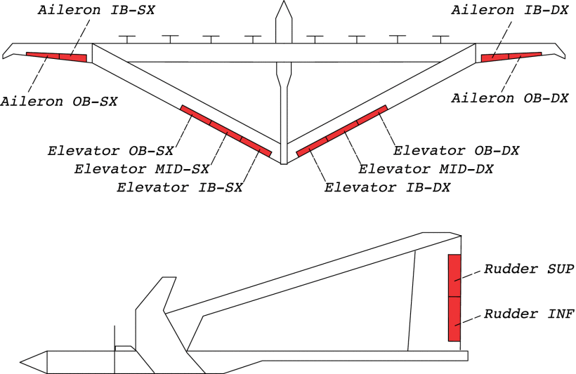 Schematic illustrating the control allocation architecture using the proposed norm-bounded model predictive control allocation strategy for the over-actuated experimental aircraft HAPD.